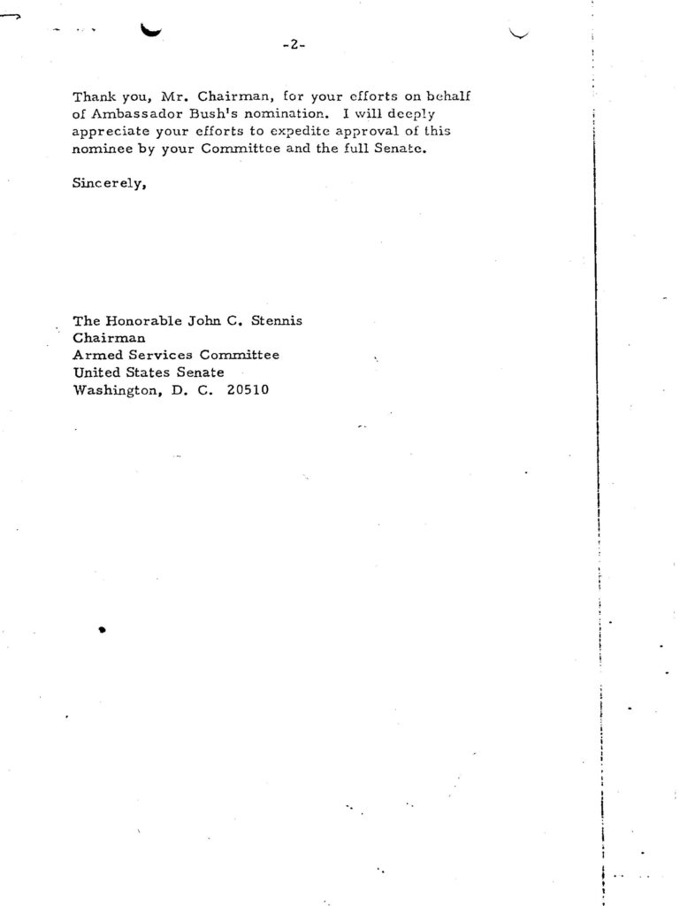 At the time of this request, Bush was stationed in China as the U.S. Liaison – a job he thoroughly enjoyed. He wrote Secretary of State Henry Kissinger on November 2, 1975, stating: